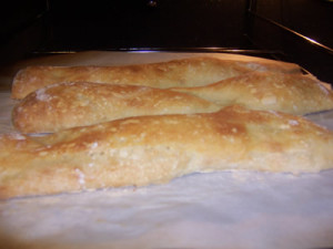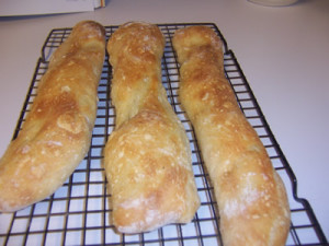 These baguettes are not the prettiest loaves I’ve made, but the flavor was really good. They have nice holes and taste great! They are chewy just like I like them.