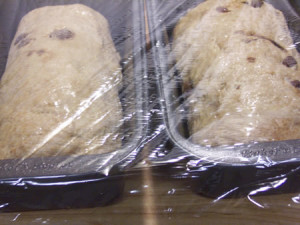 Place each loaf in a 4 1/2 x 8 1/2-inch loaf pan and sprayed them with spray oil and covered them with plastic.