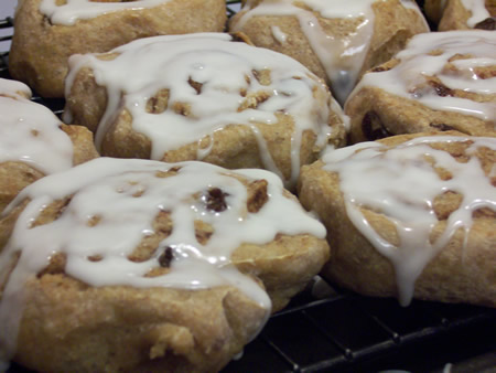 These cinnamon rolls were really good.  They taste like cinnamon raisin bread with a delicious glaze on top.