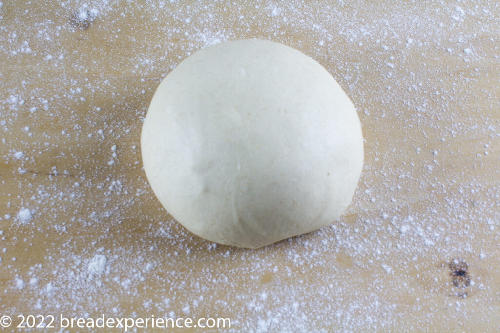 - Turn out the dough onto a floured work surface. Lightly knead into a smooth ball. Put the dough back in the bowl, cover and allow it to rest on the counter, at room temperature for 1-2 hours. Stretch and fold the dough in the bowl 2 times at 30-minute intervals during the first hour. Let the dough rest for the remaining hour.