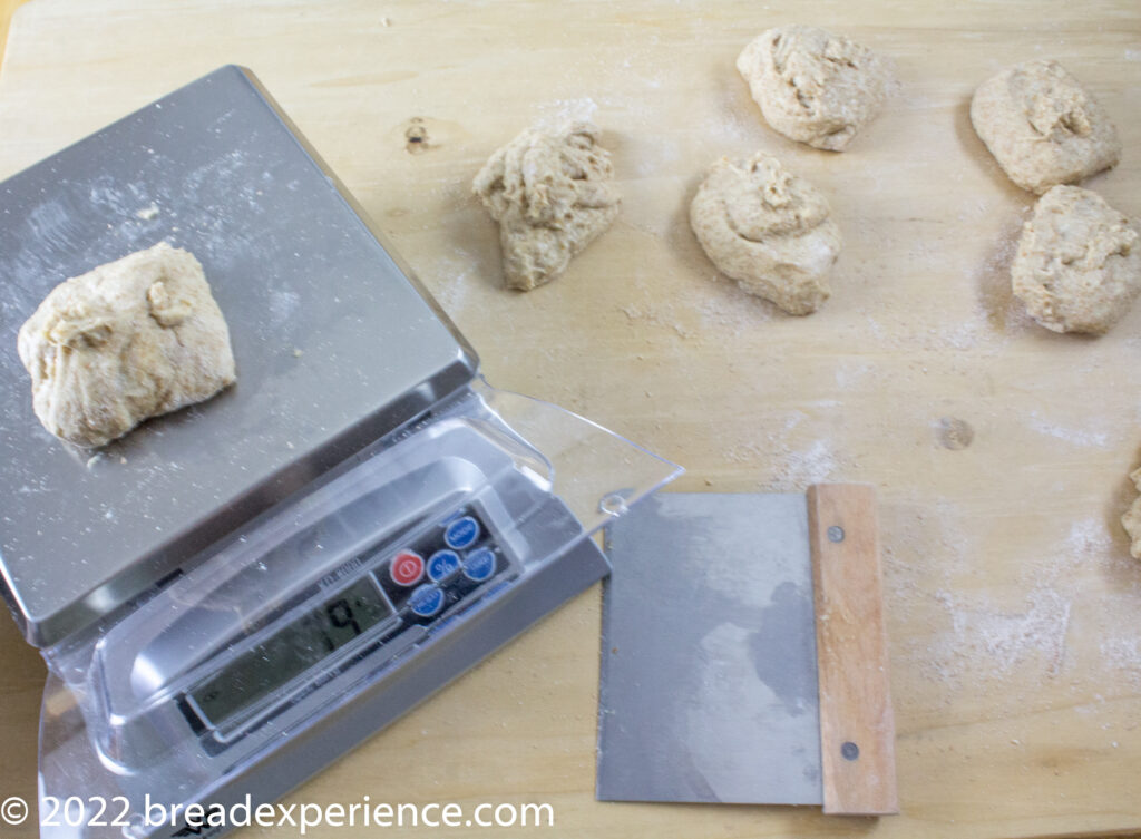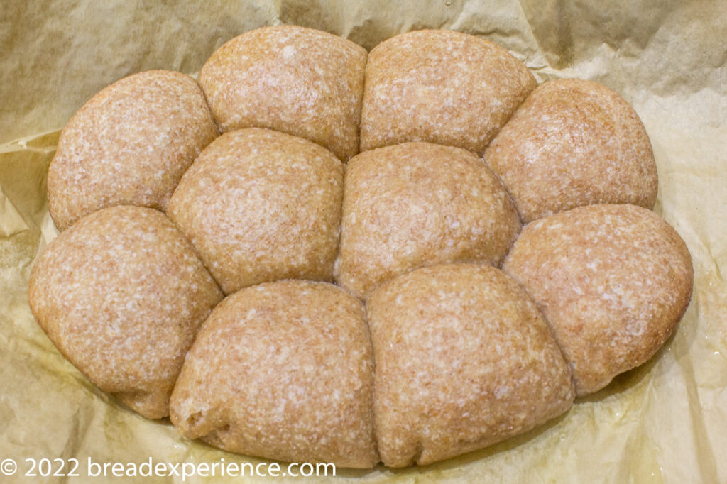 When I converted the rolls to using sourdough, I started out using 500 grams of flour in the final dough. However, after making a couple of batches and shaping 14 rolls for one batch and 12 rolls for the next batch, I decided that was a bit too much dough.