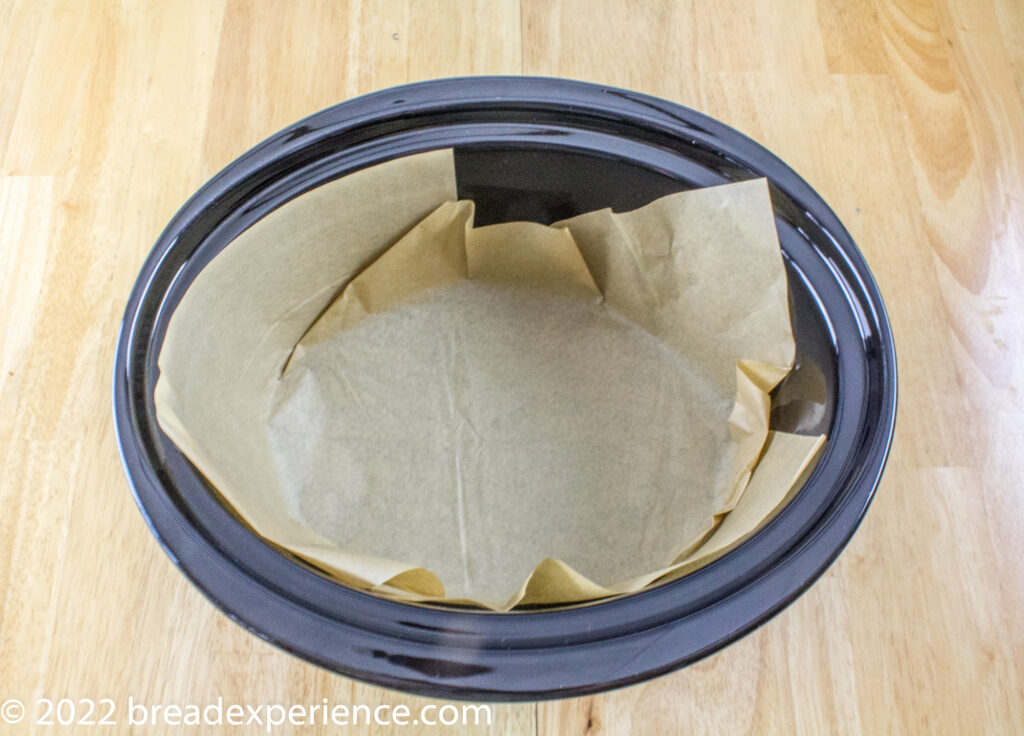 1. Line a 5–6-quart slow cooker with a large piece of parchment. You can pleat the edges if necessary to press the paper flat.