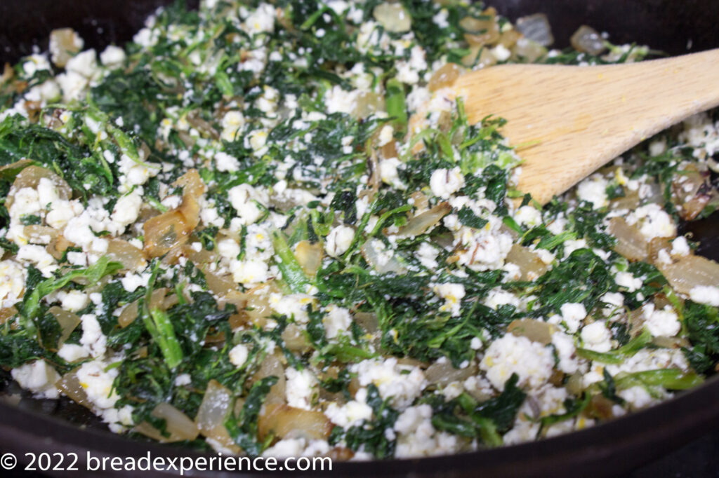- Stir the blended feta/lemon mix into the cooled spinach/onion mixture and set aside.